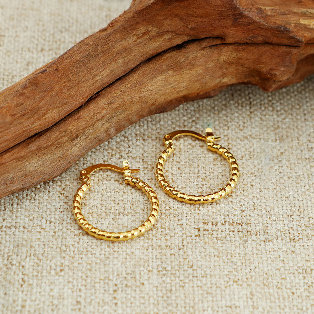 14K Gold Classic Diamond cut Hoop Earring