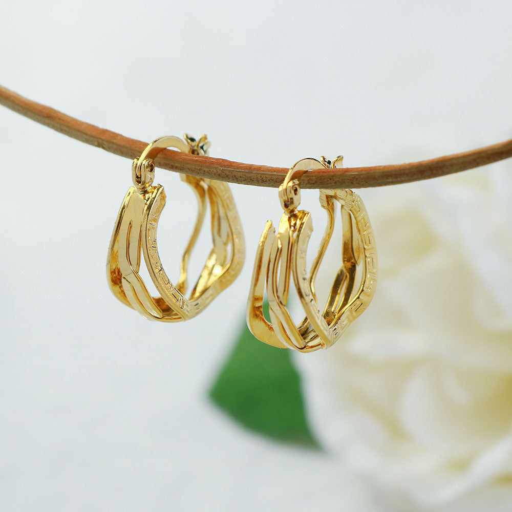 Increase quantity for 14K Greek Gold Unique Hoop Earrings