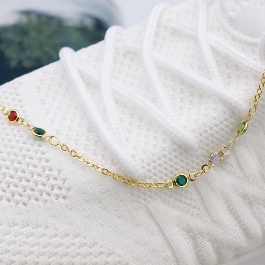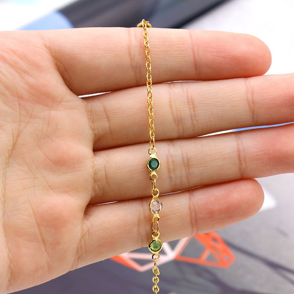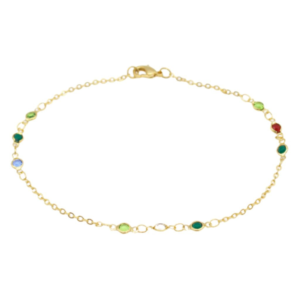Take to the beach or the pool in style with this 18K-Gold-Filled Dainty Multicolor Crystal Anklet! This beautiful piece features a gold-filled chain and is dotted all around with sparkly multicolored crystals. It's the perfect way to add some extra glamour to any outfit!
