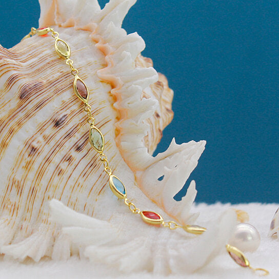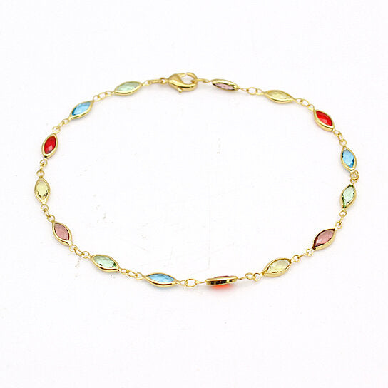 Giovani GOLD NYC 18K GOLD FILLED HIGH POLISH FINSH GOLD AND MULTI COLOR CRYSTAL OVAL ANKLET