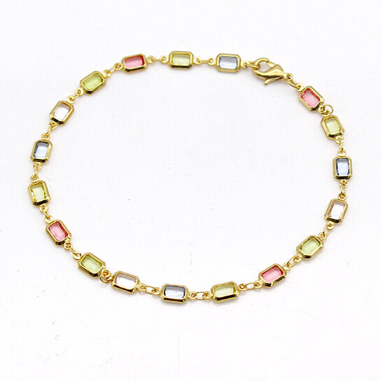 Giovani GOLD NYC 18K GOLD FILLED HIGH POLISH FINSH GOLD AND MULTI COLOR LIGHT COLOR CRYSTAL BAGUETTE ANKLET