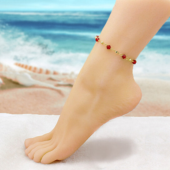 Giovani GOLD NYC 18K GOLD FILLED HIGH POLISH FINSH RED CRYSTAL ANKLE BRACELET