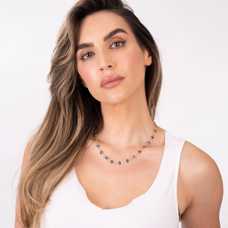 Look like a Celebrity, our gold plated Evil Eye Necklace is the perfect accessory to wear everyday for any occasion. Get complimented from everyone wearing this high polish gold plated necklace.