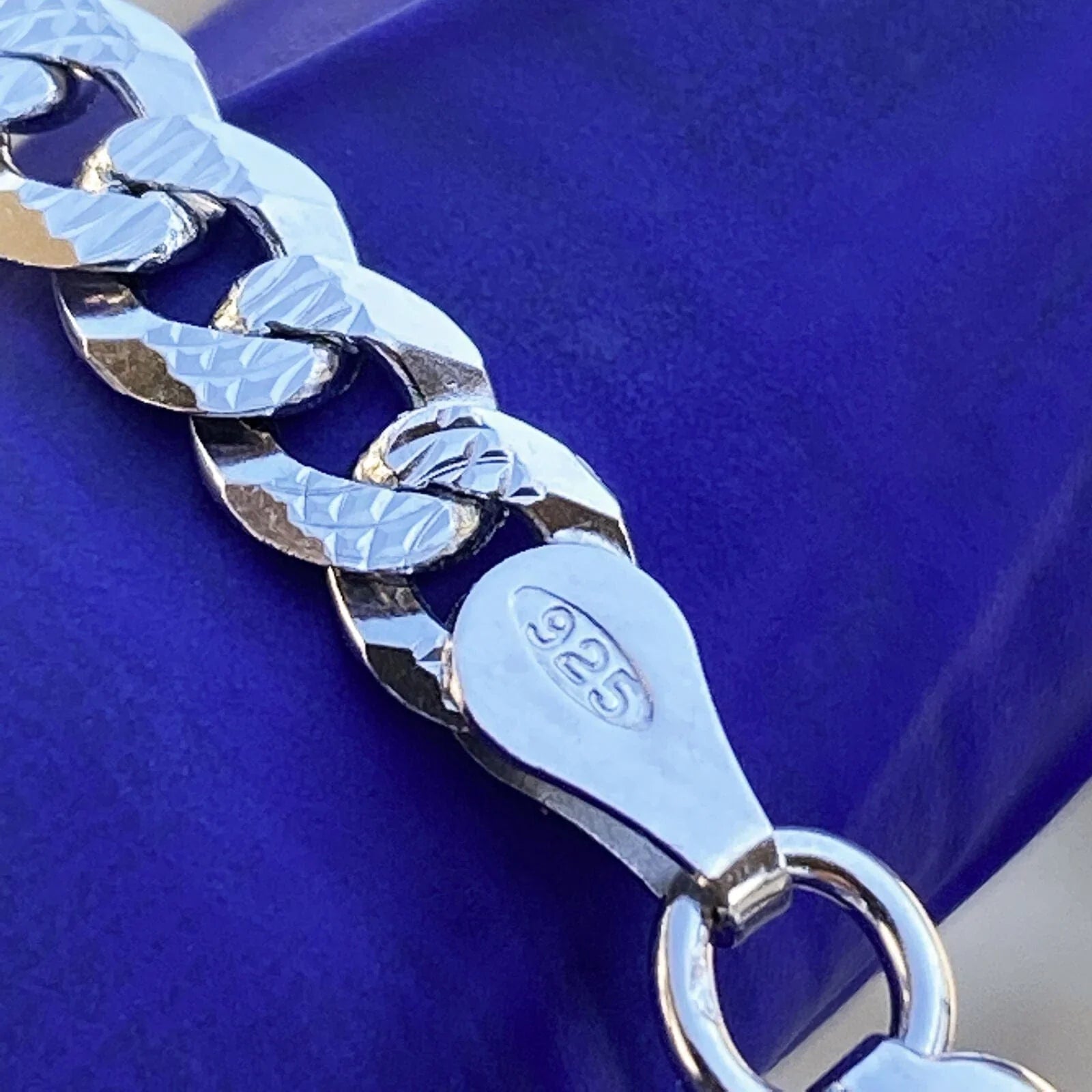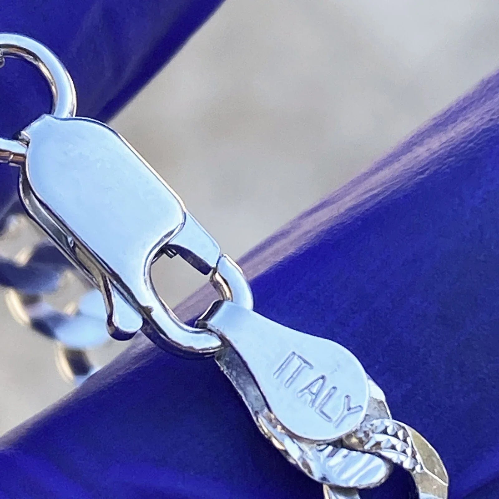 925 Sterling Silver Diamond-Cut Bracelet Italy Cuban Link 7"