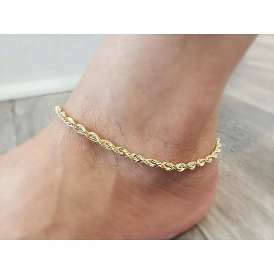 🎁 POLISHED & DURABLE - This 14k gold Filled High Polish Finsh 10 inch rope anklet is 5mm wide (5mm thick) that fastens with a sturdy lobster clasp creating a luxurious experience of a traditional gold chain,Classic appeal meets modern shine in this yellow gold Filled High Polish Finsh rope chain anklet. Great for both dress and casual wear, each rope anklet is bound with secure endcaps. 5 mm wide. Lobster claw clasp.