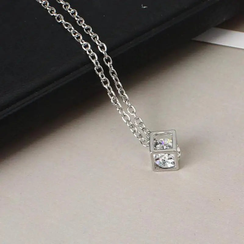 Increase quantity for 14K-Gold Love Cube Three-dimensional Diamond Shape Necklace Cz Pendant